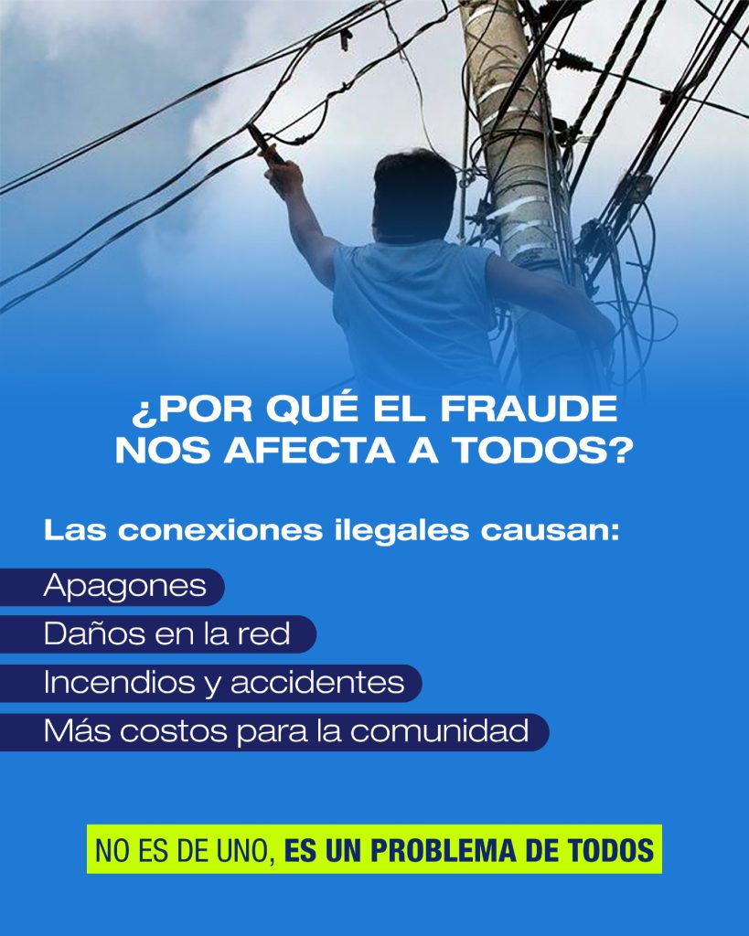 El uso ilegal de la energía y el fraude no solo afectan a la empresa, también perjudican a tu comunidad: provocan fallas en el servicio, riesgos eléctricos y costos más altos para todos.